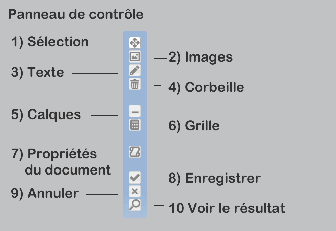 Outil de suppression cliquer sur la corbeille puis sur l’élément à supprimer (texte, image)